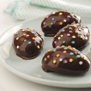 smooth. Dip eggs in chocolate; allow excess to drip off.