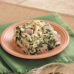 according to package directions. Stir in the spinach, cheese, ham and mustard. Drain the