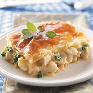 -Transfer to a greased 11-in. x 7-in. baking dish. On a lightly floured surface, roll pastry