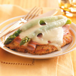 a ham slice, 2 asparagus spears and cheese. cover and cook 1