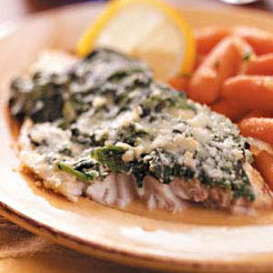 cheese and spinach; spoon over fillets. Sprinkle with Parmesan